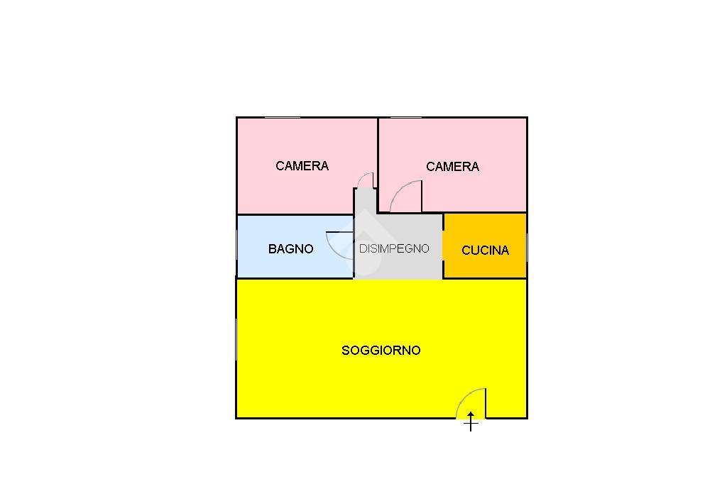 Il disimpegno ed il bagno, finestrato con box doccia, dividono i vari ambienti della casa.