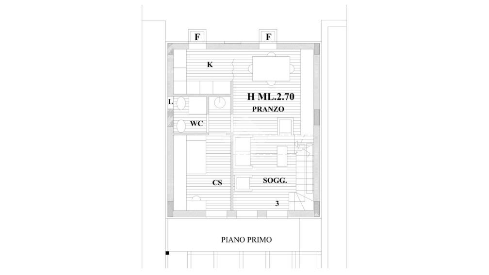 L'abitazione, accessibile tramite le scale, disporrà al piano principale di un ampia e luminosa zona giorno open space, con living, sala da pranzo e cucina che sarà completata dal bagno e da una camera singola, comoda per accogliere gli ospiti o per chi vuole riservarsi uno spazio per studiare o lavorare da casa.