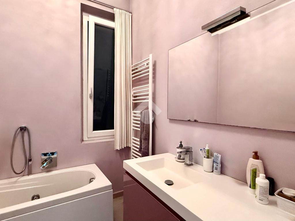Il disimpegno è contornato dai locali della zona notte e dai doppi servizi entrambi finestrati, di cui uno con vasca ed uno con doccia ed angolo lavanderia.