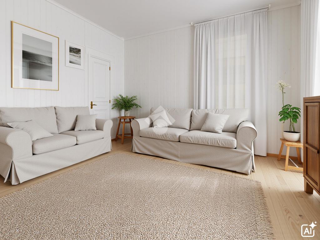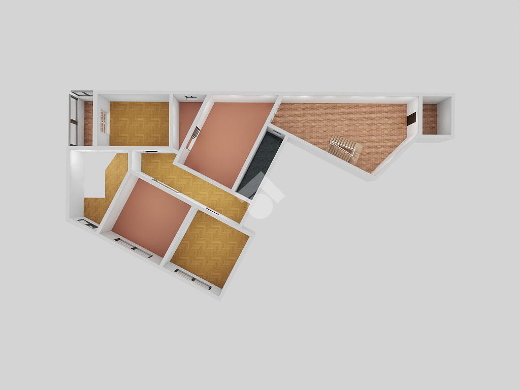 Il primo piano è quello dove si sviluppa l'appartamento, i cui ambienti vengono suddivisi da un ampio corridoio.