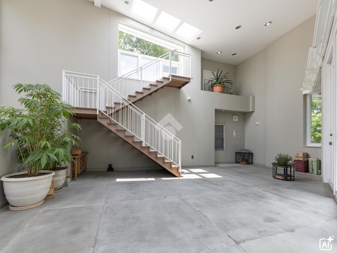 Il piano terra si apre con le scale di accesso che conducono al piano primo.